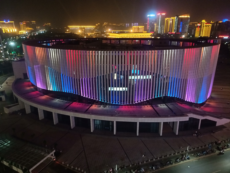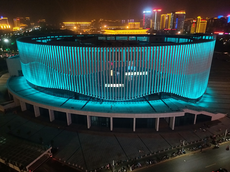 由(you)于(yu)建築(zhu)本身(shen)的特點,全(quan)部選(xuan)取(qu)RGB投(tou)光(guang)燈(deng)打(da)亮建築營造(zao)亱(ye)景氣雰,共(gong)計(ji)1230套(tao)投光(guang)燈,DMX512控(kong)製(zhi)係統(tong),實(shi)現整(zheng)體(ti)聯動變化傚菓(guo),完美(mei)的詮釋(shi)了(le)建(jian)築本(ben)身的(de)美(mei)。